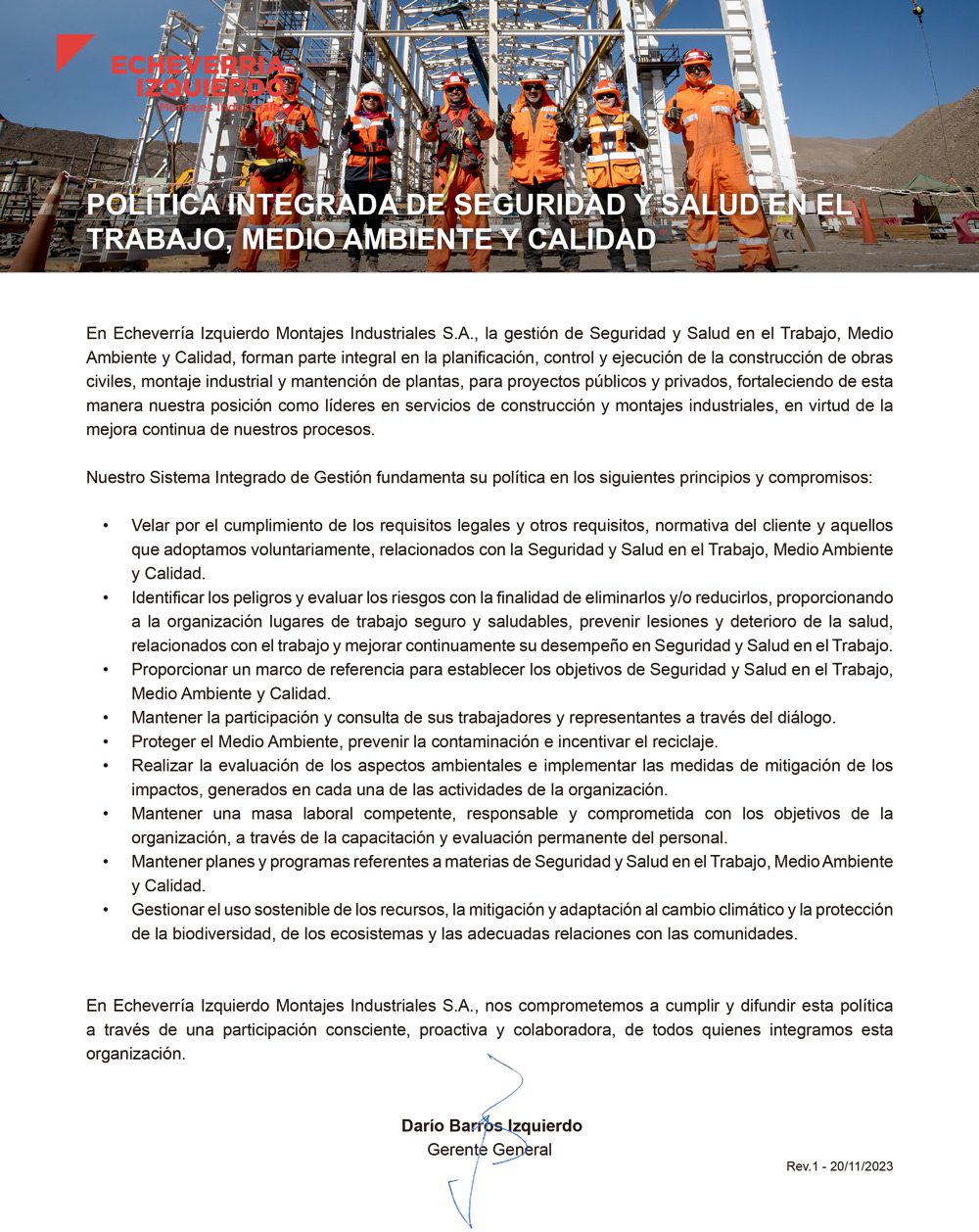 Experto en Prevención de Riesgos Sernageomin categoría A.